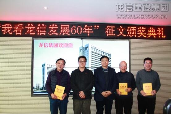 龍信集團董事長陳祖新發(fā)表了熱情洋溢的講話,陳董首先向關心龍信發(fā)展的各界人士表示感謝,對本次征文比賽獲獎人員表示祝賀。向大家介紹了集團發(fā)展歷程,龍信成立于1958年,是海門最早成立的建筑施工企業(yè),公司一直堅持以建筑為主業(yè),常年奮戰(zhàn)在全國各地,近年來參與家鄉(xiāng)建設,為家鄉(xiāng)人民提供高品質(zhì)全裝修住宅和一流的服務。目前集團四板塊一中心聯(lián)動發(fā)展,形成“建筑產(chǎn)業(yè)化、綠色建筑、全裝修成品住房、養(yǎng)老產(chǎn)業(yè)”四張王牌優(yōu)勢。面對激烈的市場環(huán)境,建筑企業(yè)需不斷創(chuàng)新,變革發(fā)展,未來通過上市進一步規(guī)范企業(yè)管理,使得企業(yè)健康長久發(fā)展。陳董談到,龍信的發(fā)展還得益于優(yōu)秀文化的支撐,從創(chuàng)業(yè)之初的“老實做人、實在做事”的務實作風,到現(xiàn)在持續(xù)創(chuàng)新、追求高效、合作共贏,無不體現(xiàn)著龍信與時俱進的作風。未來,龍信將為實現(xiàn)百年企業(yè)努力奮斗。隨后,海門市委宣傳部副部長、海門日報社社長沈健生,總編范軍、副總陳松,龍信集團董事長陳祖新、總經(jīng)理唐愛東、副總經(jīng)理何咸軍等為本次“我看龍信發(fā)展60年”征文比賽中榮獲一、二、三等獎的獲獎人員頒發(fā)獎金和證書并合影留念。獲獎代表上臺發(fā)表講話。他們紛紛表示與龍信有著不解之緣,多年來一直關注龍信的發(fā)展,通過這次征文活動,對龍信有了更為直觀的了解。獲獎代表共同祝愿龍信發(fā)展騰飛,期待實現(xiàn)百年龍信的宏偉目標!最后,所有嘉賓在龍信大廈前合影留念。