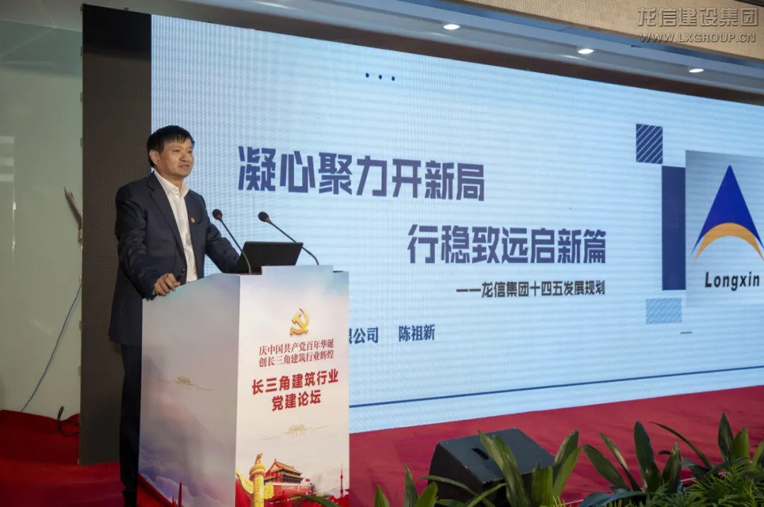 儀式上,龍信集團(tuán)黨委書(shū)記、董事長(zhǎng)陳祖新致辭,他表示,龍信集團(tuán)始終堅(jiān)持以黨建為統(tǒng)領(lǐng)推動(dòng)企業(yè)高質(zhì)量發(fā)展。十九屆五中全會(huì)審議通過(guò)的“十四五規(guī)劃”和二〇三五年遠(yuǎn)景目標(biāo)為中國(guó)建筑業(yè)的發(fā)展指明了新的發(fā)展方向,龍信集團(tuán)將堅(jiān)定不移貫徹新發(fā)展理念,以科技創(chuàng)新為驅(qū)動(dòng),依托國(guó)家博士后科研工作站、龍信發(fā)展研究院等平臺(tái),在創(chuàng)新中求突破,積極推動(dòng)綠色建筑、智慧建筑發(fā)展,積極構(gòu)建新時(shí)期企業(yè)發(fā)展新格局。