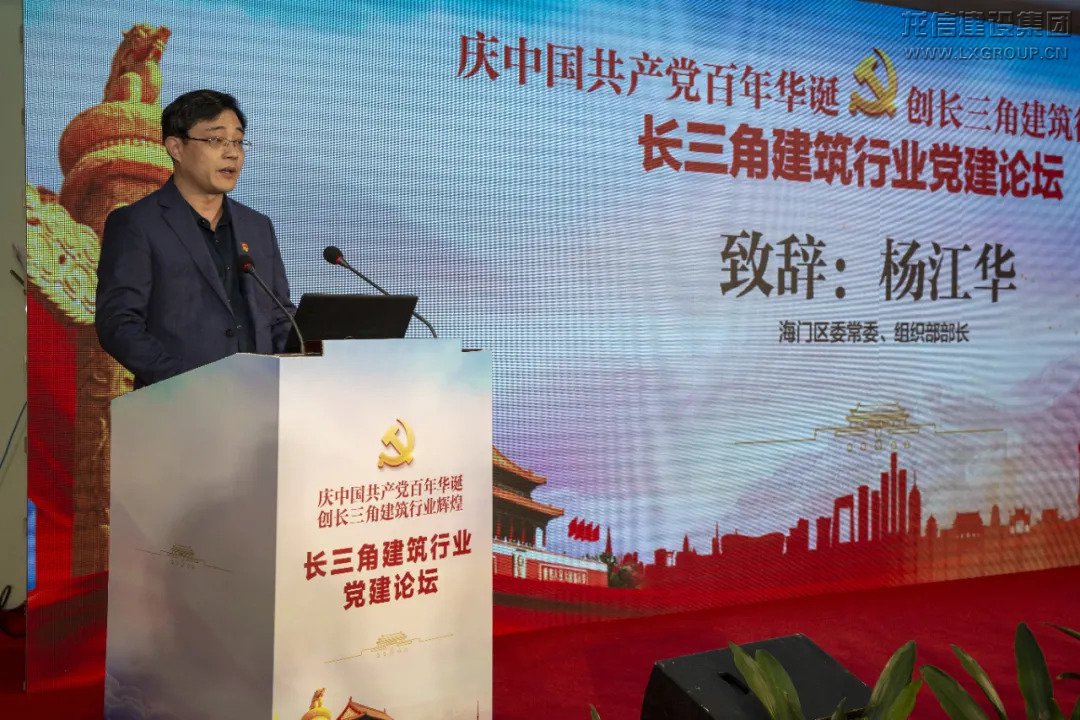 會(huì)上,海門(mén)區(qū)委常委、組織部部長(zhǎng)楊江華致辭,他指出,海門(mén)是聞名遐邇的建筑之鄉(xiāng)。今年是“十四五”開(kāi)局之年,海門(mén)正加快推進(jìn)建筑企業(yè)現(xiàn)代化轉(zhuǎn)型的步伐,而龍信集團(tuán)始終走在前列,為推動(dòng)海門(mén)建筑全產(chǎn)業(yè)鏈協(xié)同發(fā)展,推廣綠色建筑、智慧建筑創(chuàng)新發(fā)展提供了參考。這一成績(jī)的取得與龍信集團(tuán)始終堅(jiān)持黨的領(lǐng)導(dǎo)息息相關(guān),希望更多的企業(yè)牢固樹(shù)立“抓黨建就是抓發(fā)展,企業(yè)發(fā)展必須抓黨建”的原則,以黨建工作的高質(zhì)量保證企業(yè)發(fā)展的高質(zhì)量。希望更多人士關(guān)注海門(mén)、來(lái)到海門(mén)、建設(shè)海門(mén),也希望更多的企業(yè)把黨建工作作為引領(lǐng)公司發(fā)展的不竭動(dòng)力。