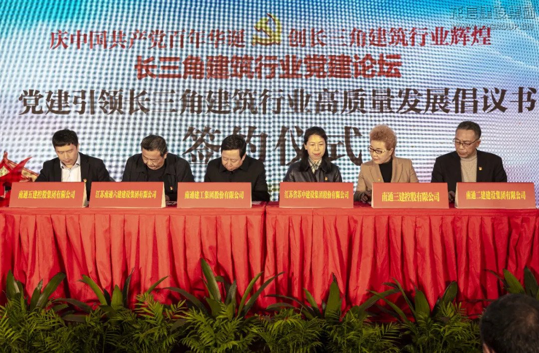 論壇上,長(zhǎng)三角建筑行業(yè)黨建論壇揭牌,由安徽省建筑設(shè)計(jì)研究總院股份有限公司、沈陽(yáng)建筑大學(xué)、中天建設(shè)集團(tuán)有限公司、上海海怡建設(shè)(集團(tuán))有限公司、上海華東房產(chǎn)設(shè)計(jì)院有限公司、南通三建控股集團(tuán)有限公司、江蘇省蘇中建設(shè)集團(tuán)股份有限公司、南通建工集團(tuán)股份有限公司、江蘇南通六建建設(shè)集團(tuán)有限公司、南通五建控股集團(tuán)有限公司、南通二建建設(shè)集團(tuán)有限公司、龍信建設(shè)集團(tuán)有限公司12家企業(yè)共同聯(lián)合發(fā)起《黨建引領(lǐng)長(zhǎng)三角建筑行業(yè)高質(zhì)量發(fā)展倡議書(shū)》?!冻h書(shū)》指出,長(zhǎng)三角一體化的步伐鏗鏘有力、建筑業(yè)轉(zhuǎn)型升級(jí)高質(zhì)量發(fā)展的藍(lán)圖已躍然紙上。未來(lái),長(zhǎng)三角區(qū)域里的建筑業(yè)企業(yè),將堅(jiān)持黨建引領(lǐng)企業(yè)發(fā)展,以踏實(shí)肯干的“老黃牛”精神、敬業(yè)奉獻(xiàn)的“孺子牛”精神、敢闖敢干的“初生牛犢”精神,朝著高質(zhì)量發(fā)展的目標(biāo)高歌猛進(jìn)、再立新功,打好“十四五”之戰(zhàn)!