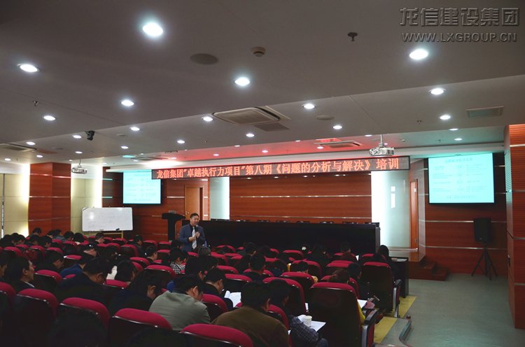 卓越執(zhí)行力培訓項目第八期《問題的分析與解決》培訓于2015年4月11日在龍信大廈20樓舉辦。集團公司、三分、十一分、十六分、市政園林、設(shè)計院、江蘇運杰、中技天峰、龍信物業(yè)、機電安裝、錦賢裝飾及鋁合金門窗廠的125位領(lǐng)導(dǎo)及員工參加了此次課程,培訓歷時3小時,取得圓滿成功。