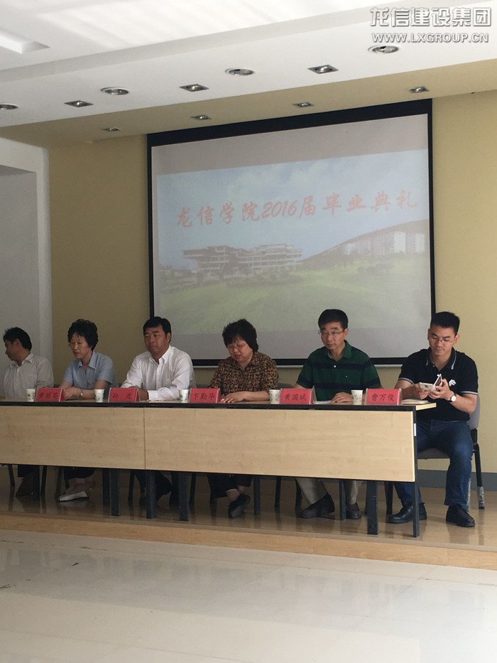 2016年6月7日上午,龍信學(xué)院“2+1”模式第二期畢業(yè)典禮在江蘇建筑職業(yè)技術(shù)學(xué)院利亞樓報告廳舉行。集團(tuán)公司工會主席卞勤華、人力資源部黃麗英、江蘇建院校長孫進(jìn)、建工學(xué)院陳年和院長、黨委書記黃國斌等領(lǐng)導(dǎo)和58名2016屆龍信學(xué)院畢業(yè)生參加典禮。