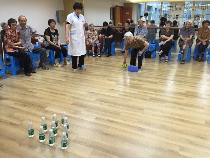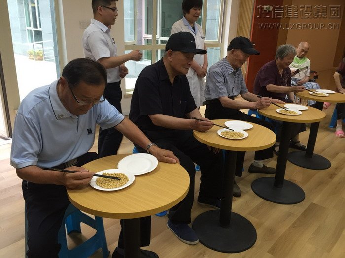 第二個比賽項目是快樂套圈。長者們認真的投擲著手中的套圈,為套中而欣喜,也為落空而遺憾。但是最幸福的事,不是你摘得了桂冠,而是看到你的臉上洋溢出許久未見的笑容。1301室的陳叔叔自中風后身體狀況一直不佳,平時的起居飲食需要保姆的照料,他坐著輪椅來到規(guī)定的比賽投擲線,用自己稍稍顫抖的右手接過套圈,當大家看到這樣的距離對他來說比較困難的時候,參賽的其他叔叔阿姨主動提出要為他縮短距離。在樂頤薈這個大家庭里,每一次活動,規(guī)則不重要,輸贏更不重要,重要的只有這彌足珍貴的鄰里情誼。當陳叔叔投中時,他笑了,這一笑溫暖了在場的所有人。最終,508室的俞阿姨、1101室的施叔叔、1301室的陸阿姨奪得了前三甲。
