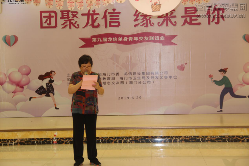 630日,以“團聚龍信、緣來是你”為主題的第屆單身青年交友聯(lián)誼會在海門思杰酒店舉辦。此次活動由龍信集團、海門團市委主辦,海門同夢緣婚戀網(wǎng)分部、海門市教育局、海門市衛(wèi)生局、海門市農(nóng)商行及開發(fā)區(qū)等單位協(xié)辦,共計103名單身青年參加了本次聯(lián)誼會。