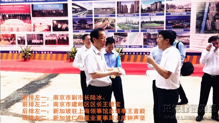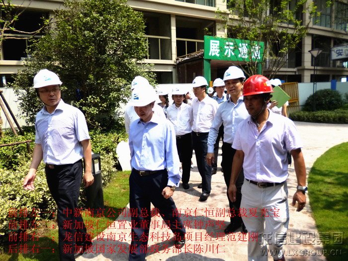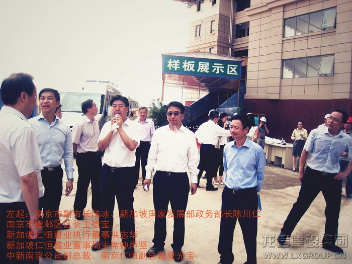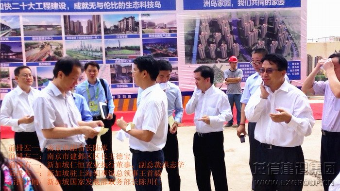 2013年8月16日上午,中、新領(lǐng)導(dǎo)考察團(tuán)蒞臨江心洲在建項目南京生態(tài)科技島參觀考察,考察團(tuán)由新加坡領(lǐng)導(dǎo)人力部代部長兼國家發(fā)展部政務(wù)部長陳川仁、駐華大使羅嘉良、駐滬領(lǐng)事館總領(lǐng)事王首毅、駐滬領(lǐng)事館領(lǐng)事陳櫘伊、國際企業(yè)發(fā)展局中國華東區(qū)副司長王俐恩、仁恒置業(yè)董事局主席鐘聲堅、勝科城鎮(zhèn)發(fā)展有限公司總裁趙萬成、仁恒置業(yè)執(zhí)行董事執(zhí)行副總裁洪志華,中方南京市副市長陸冰、南京市建鄴區(qū)區(qū)長王德寶、中新南京公司副總裁南京仁恒副總裁夏光寶、馮亞軍、張俊、王杰等其他領(lǐng)導(dǎo)組成,龍信建設(shè)集團(tuán)江心洲項目經(jīng)理范建剛?cè)膛阃?br />