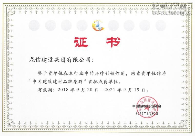 2018年全國“質量月”期間,以“加快集群品牌建設、推動國際品牌共同發(fā)展”為主題的“首屆中國集群品牌論壇”于9月20日在京成功舉行。龍信集團作為中國建筑建材品牌集群首批成員單位應邀出席論壇。