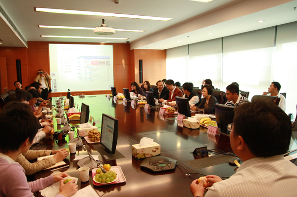 10月15日,由上海建筑業(yè)管理辦公室、上海建筑建材業(yè)受理服務(wù)中心組織的上海建工集團、上海城建集團、上海隧道股份等9家特級企業(yè)30多人,考察學(xué)習(xí)集團公司信息化建設(shè)。海門建管局局長劉亞珍、副局長顧闖、集團公司后方經(jīng)營層人員、信息部負責(zé)人熱情接待。